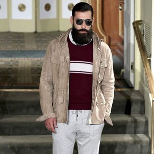 Adding a but of modernity to the collection, there was a cheeky reference to social media like a "Follow Me" patch on a sweater. In all, it was a romantic and intimate collection that looked to the allure and sexuality of French men mixed with Bastian's neo-dandy aesthetic.