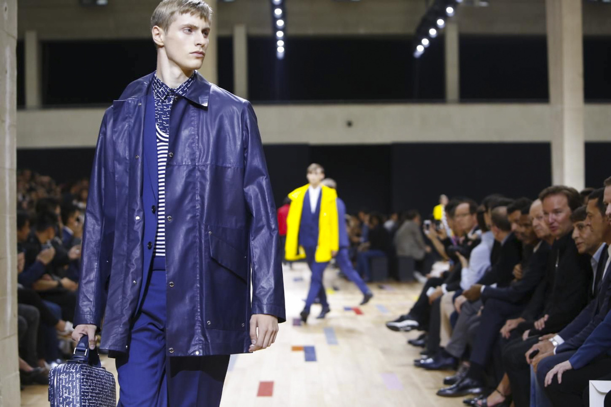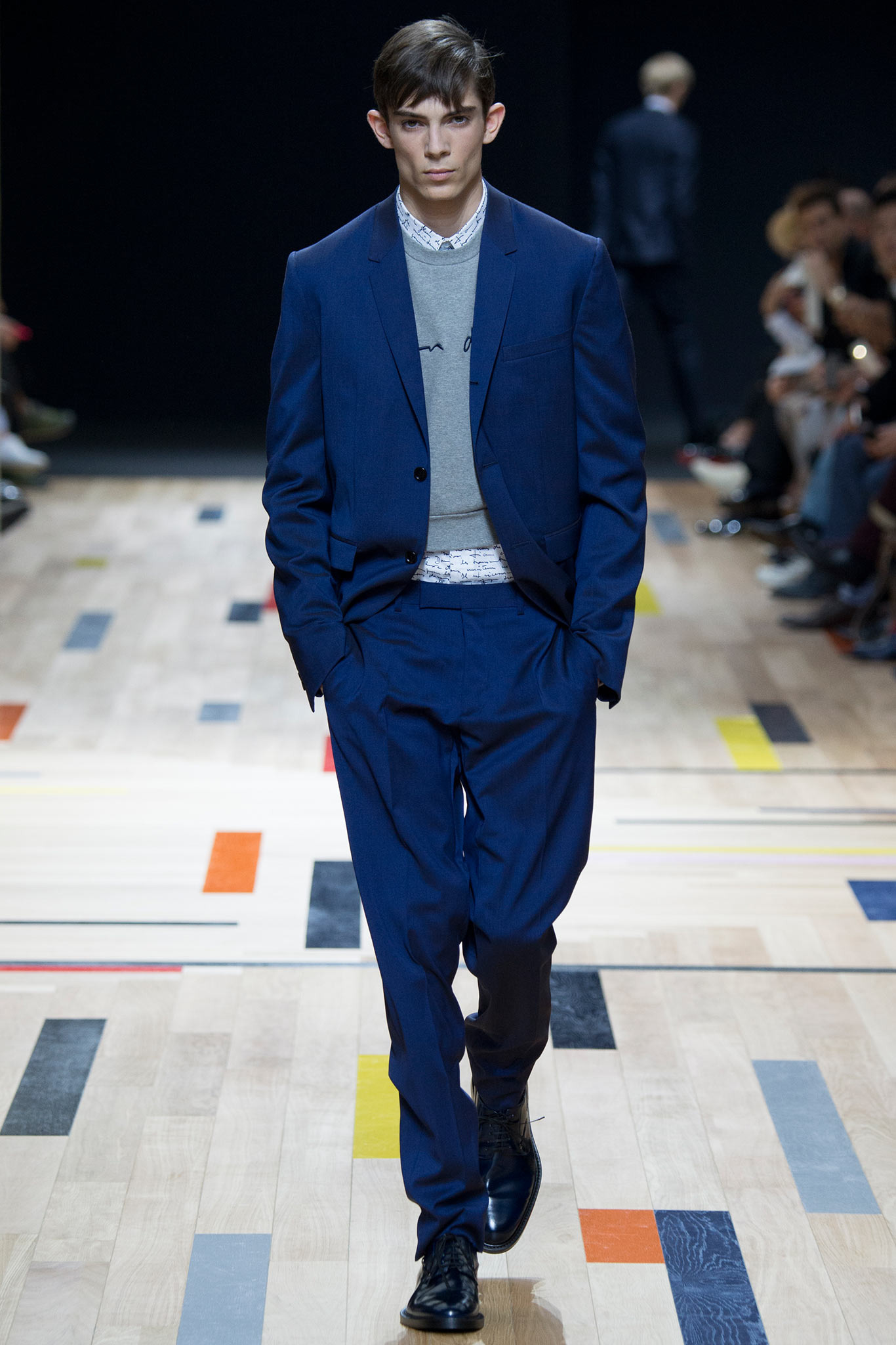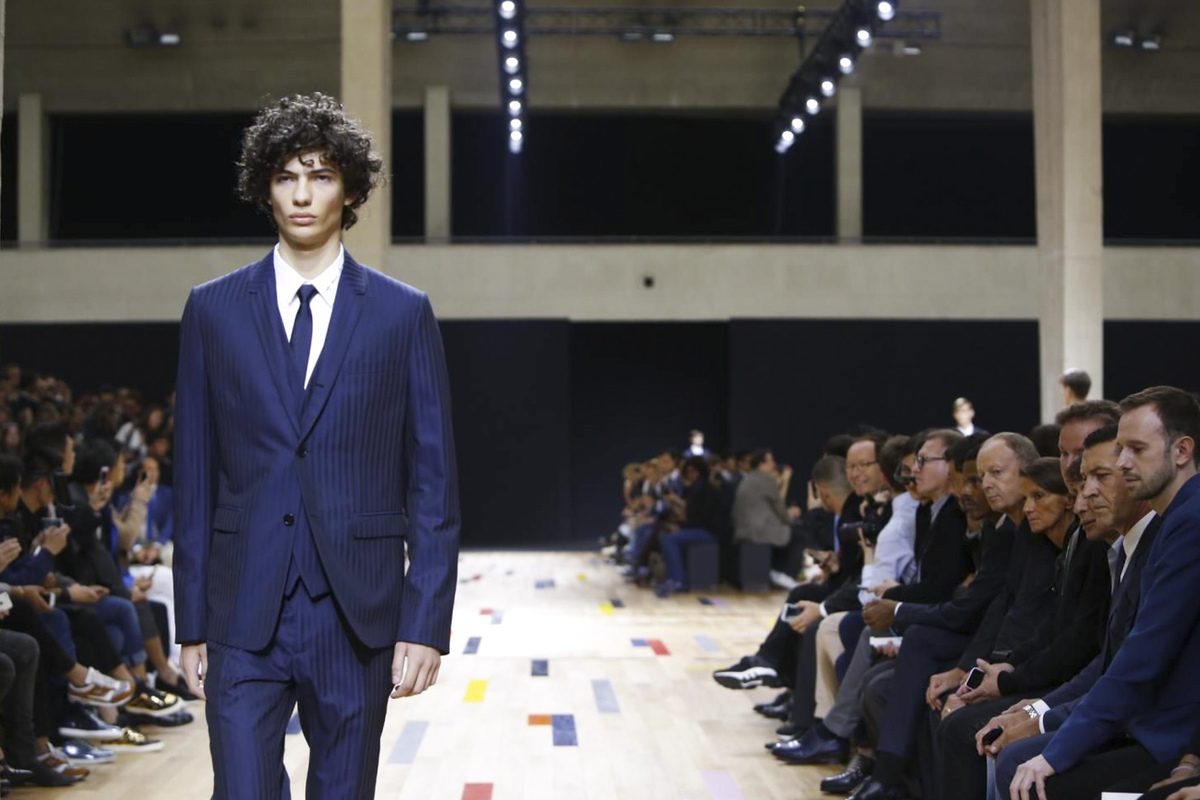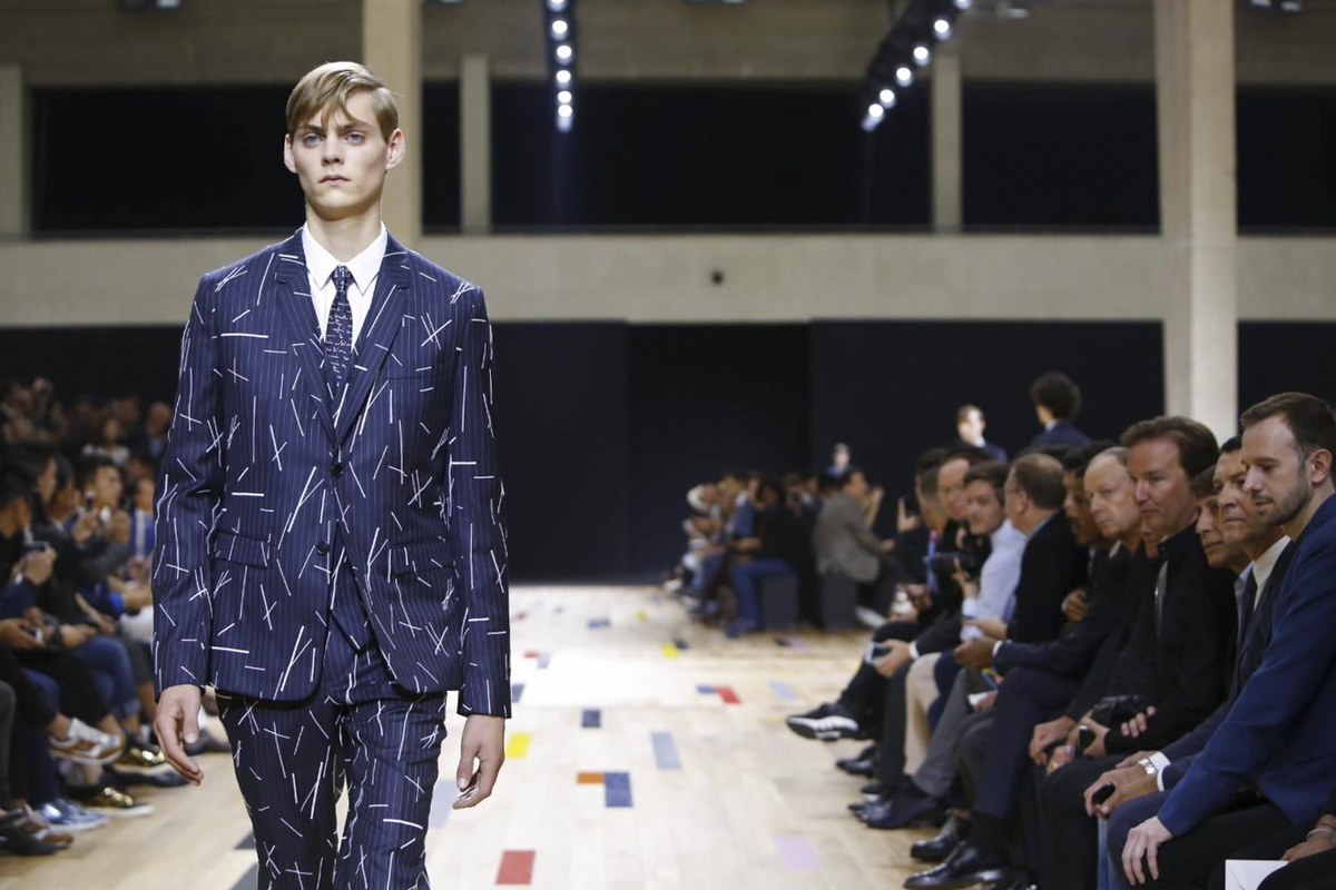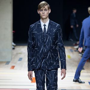Dior menswear designer Kris van Assche said he delved into Christian Dior’s world for a collection in which the “bourgeois meets the artist", elaborating with “I wanted a sense of renewal and an idea of Christian Dior’s artistic milieu to come through as well as his love of formality and tradition." On show were formal, navy suits with an emphasis on the tuxedo and traditional pinstripe.