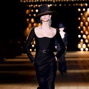 There was also a series of very 1980s-inspired dresses, with asymmetric cuts and standout shoulders. Big hats, as well as headscarves and turbans so dear to the label’s founder, Yves Saint Laurent, also featured on the runway show.