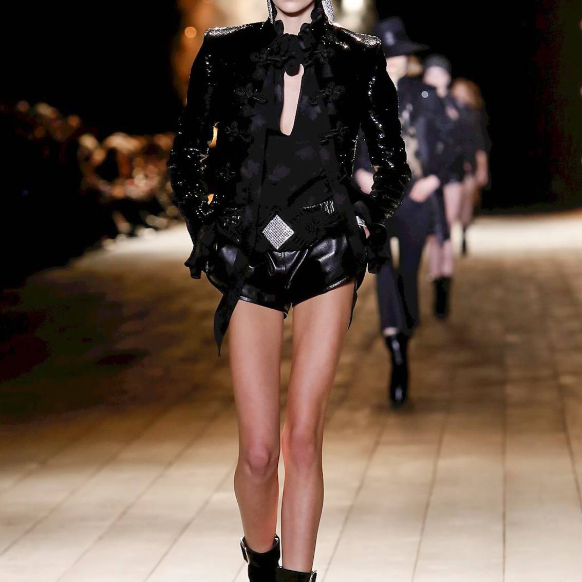For Fall-Winter 2018/19, the Saint Laurent woman is fiendishly sexy, with leather hotpants and skinny-cut pants, worn under sheer tops and blouses, embellished here and there with frills for a more bohemian vibe. Designed by Anthony Vaccarello – Saint Laurent creative director since 2016 - iconic heritage pieces from the brand were revisited in his signature style with a sexy, rock ‘n’ roll slant, synonymous with the new Saint Laurent woman.