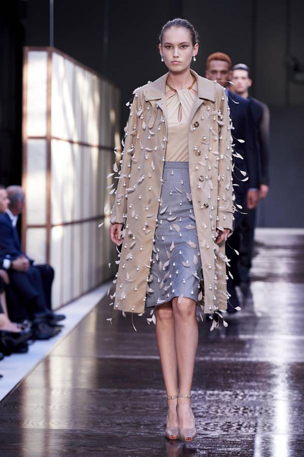 The newly-appointed chief creative officer for Burberry, Riccardo Tisci, showcased his first collection for the British label. It was a diverse, wide-ranging show, both showcasing the brand's heritage and expanding on it. The designs emphasized Burberry's proud tradition in a disciplined, orderly way that made it clear that Tisci wants to build on the brand's reputation, not rebuild it from the ground up after replacing Christopher Bailey.