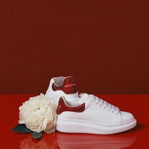 Alexander McQueen has unveiled a special capsule collection to celebrate the upcoming Lunar New Year. Principally characterised by red, famously the colour of good fortune, iconic pieces including The Curve and Curve Mini bags - in metallic leather and set with crystals- and the Oversized Sneaker set with crystals again or in classic white leather with a contrast red back feature.