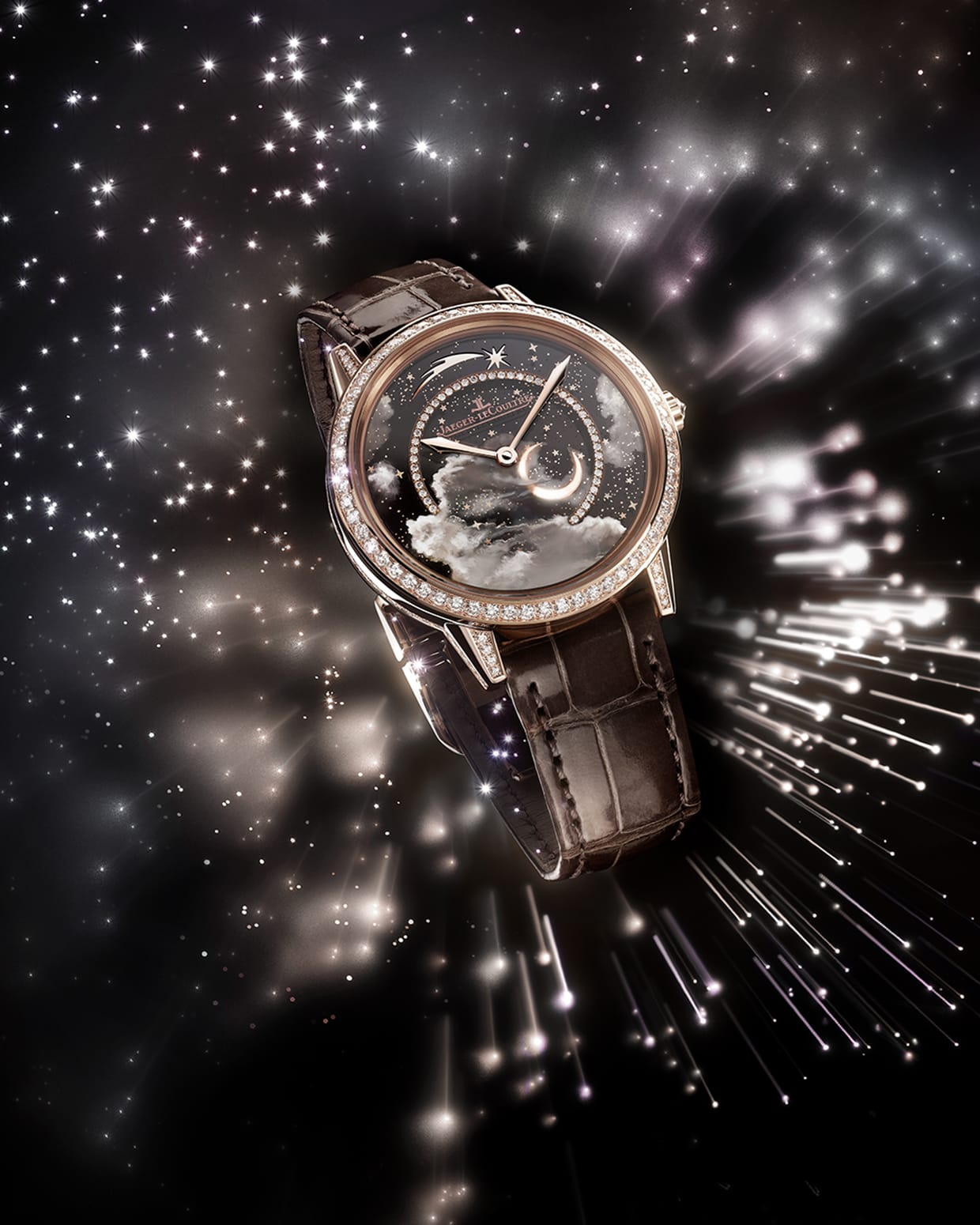 Uniting this technical acumen with La Grande Maison’s artistic skills, the Rendez-Vous Shooting Star is a whimsical expression of the enchanting night sky.