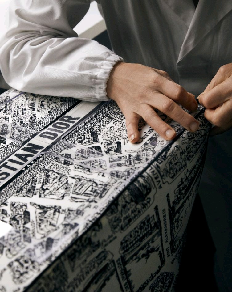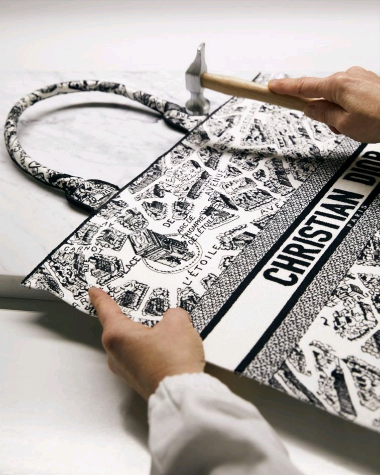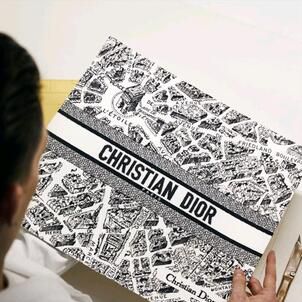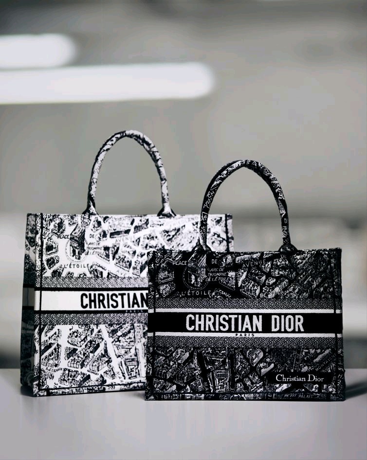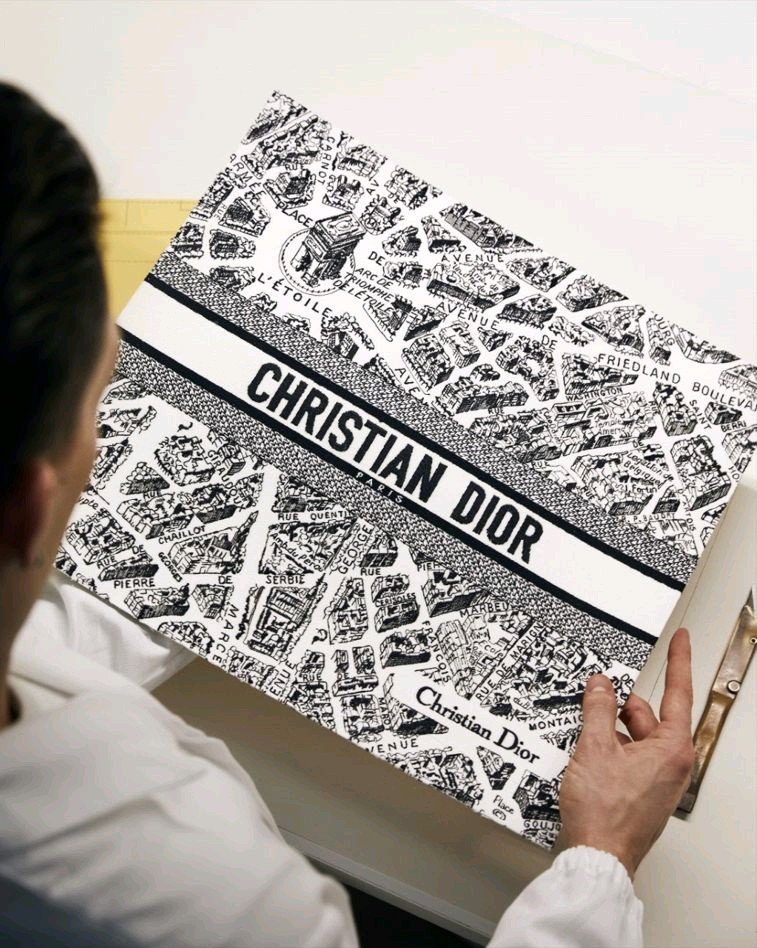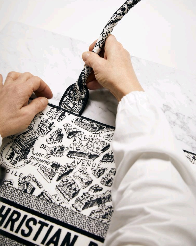 For the new iteration of the iconic #DiorBookTote designed for the Dior Spring-Summer 2023 collection by Maria Grazia Chiuri, three-dimensional embroidery brings the streets of the French capital to life through the 18th century Plan de Paris motif.