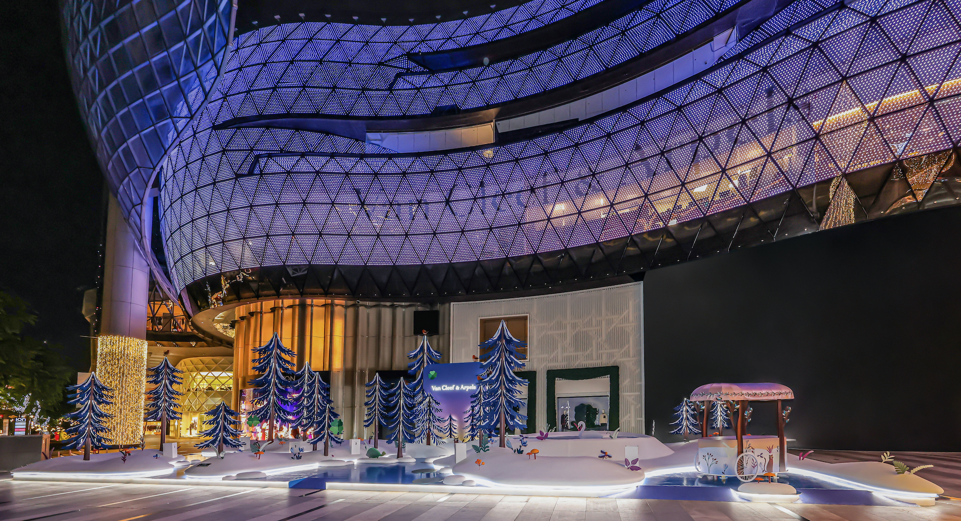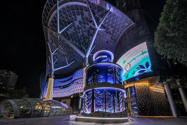 As the festive season approaches, Van Cleef & Arpels delights Singapore with a breathtaking scenography redolent of an enchanting forest. Running from November 9, 2025, to January 1, 2026, this winter installation artistically adorns the outdoor façade of the new ION Orchard boutique, alongside the Maison's Tree of Luck at the front of the mall.