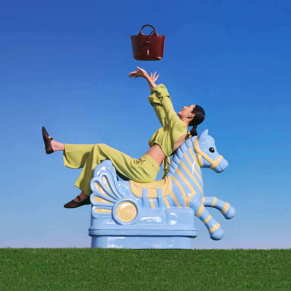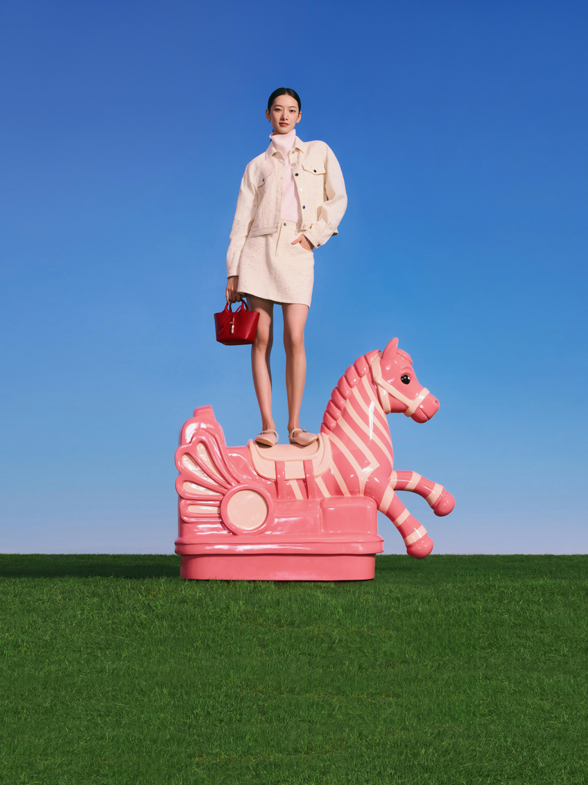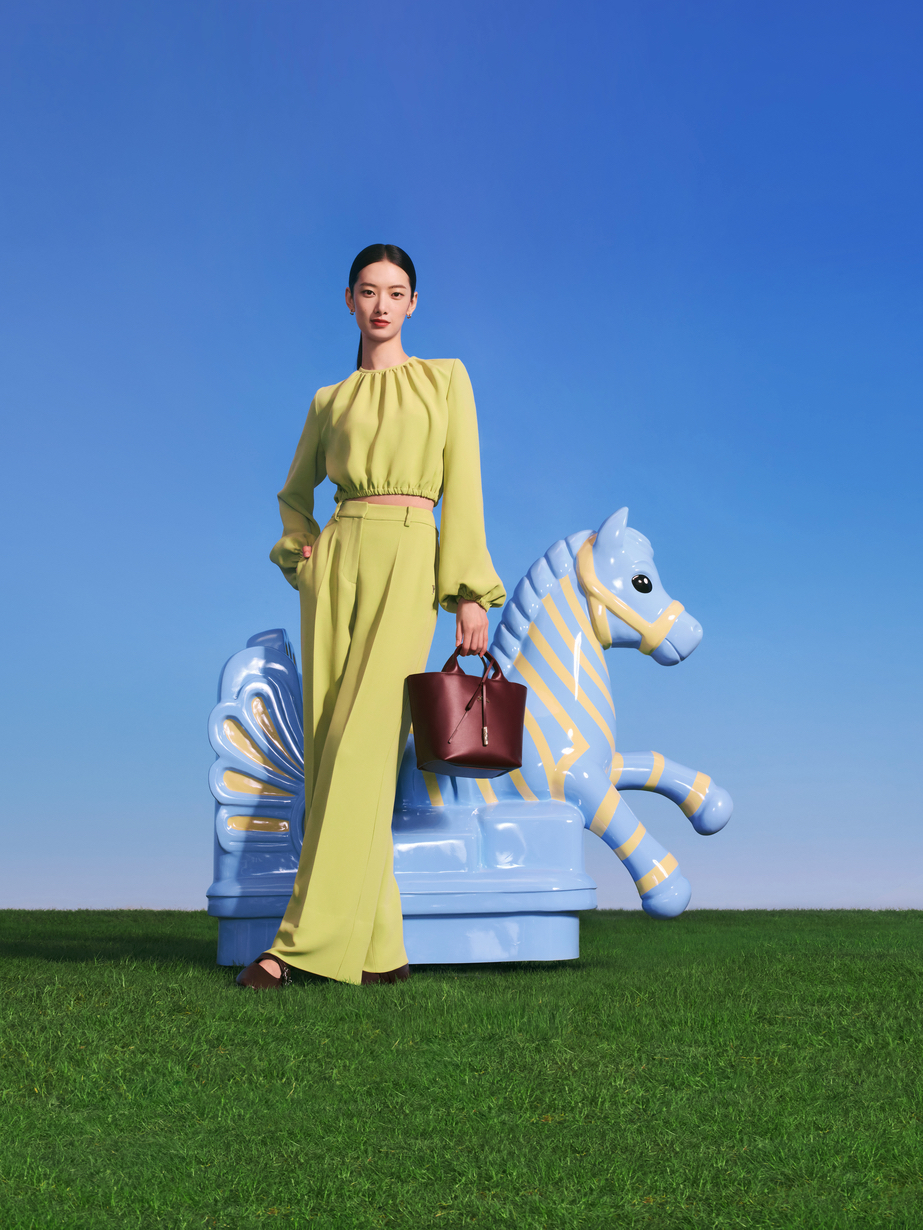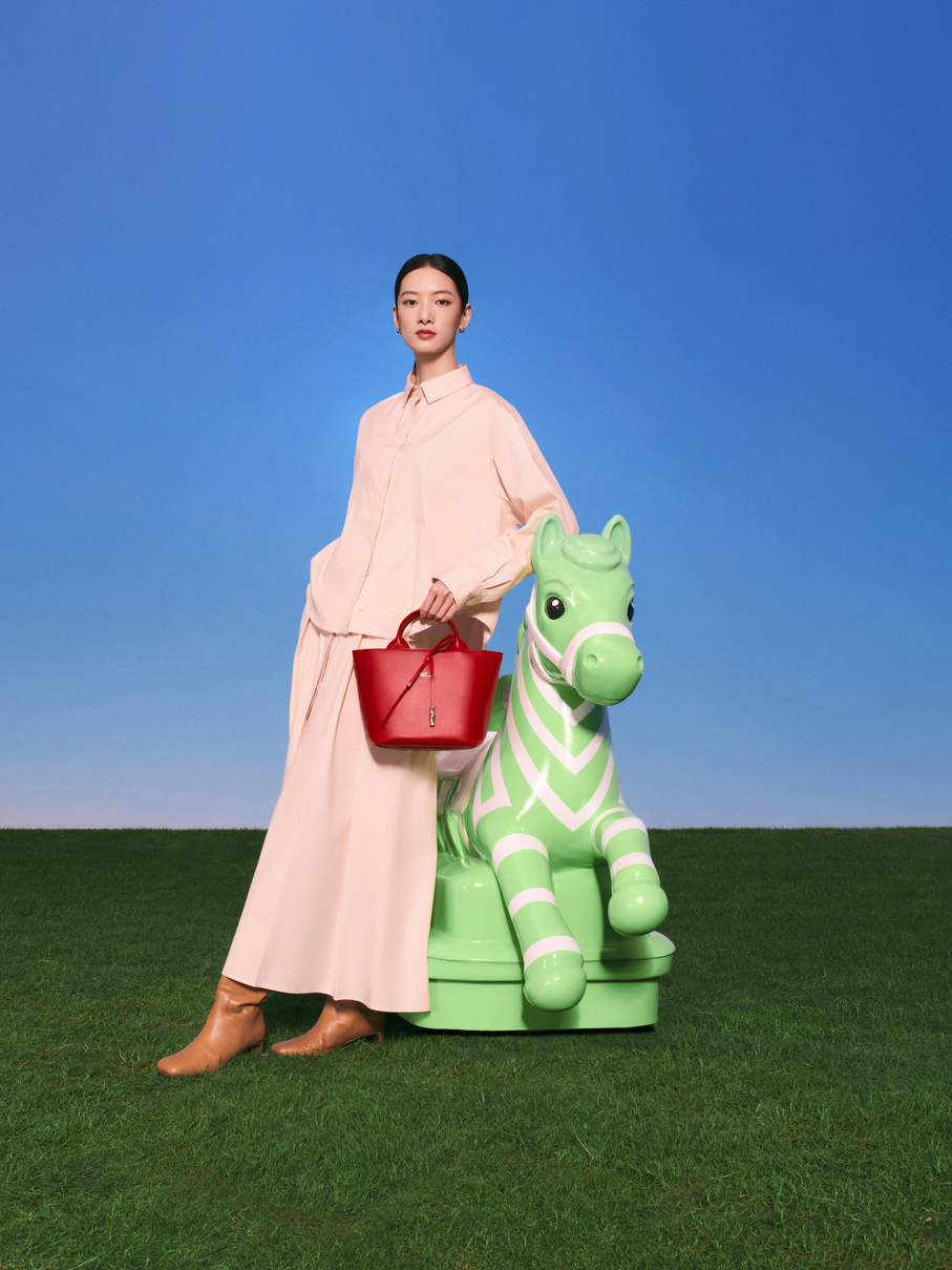 The accompanying campaign, titled Riding the Spring Breeze, stars top model Cici Xiang and was captured by photographer Leslie Zhang. The visuals reveal a poetic and pop-inflected universe featuring reinvented horses that invite a nostalgic journey back to childhood. Set against a tongue-in-cheek décor of dazzling blue skies and bright green grass, the campaign reflects the sense of optimism and renewal that defines both the change of seasons and the core values of Longchamp.