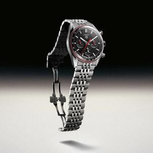 Performance remains at the heart of the TAG Heuer Carrera Chronograph with the inclusion of the in-house TH20-01 movement. This caliber delivers an impressive 80 hour power reserve and features a vertical clutch and column wheel for flawless precision. The intricate geometry of the movement is visible through a transparent sapphire caseback, which also reveals the signature Victory Wreath engraved on the lug as a tribute to achievement.