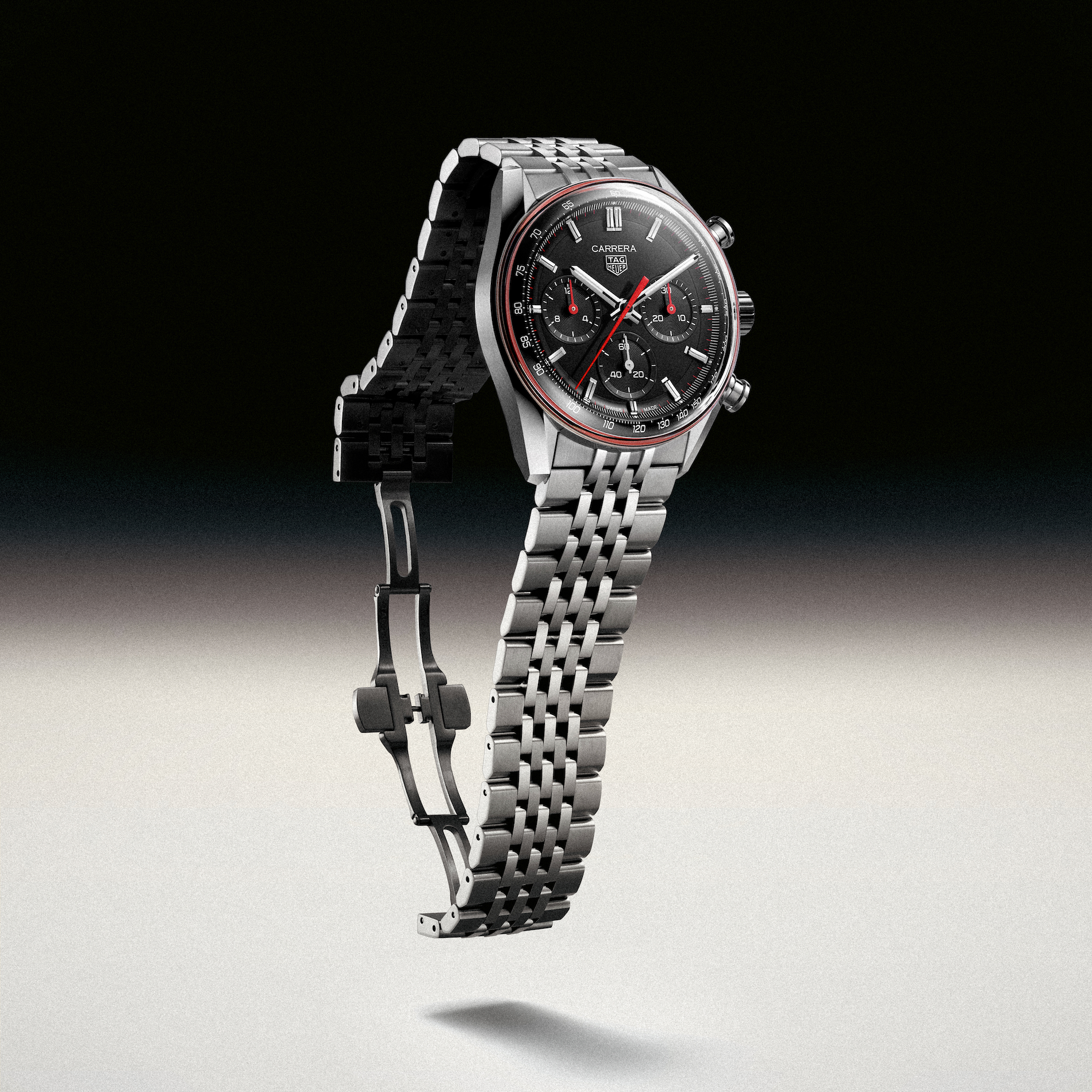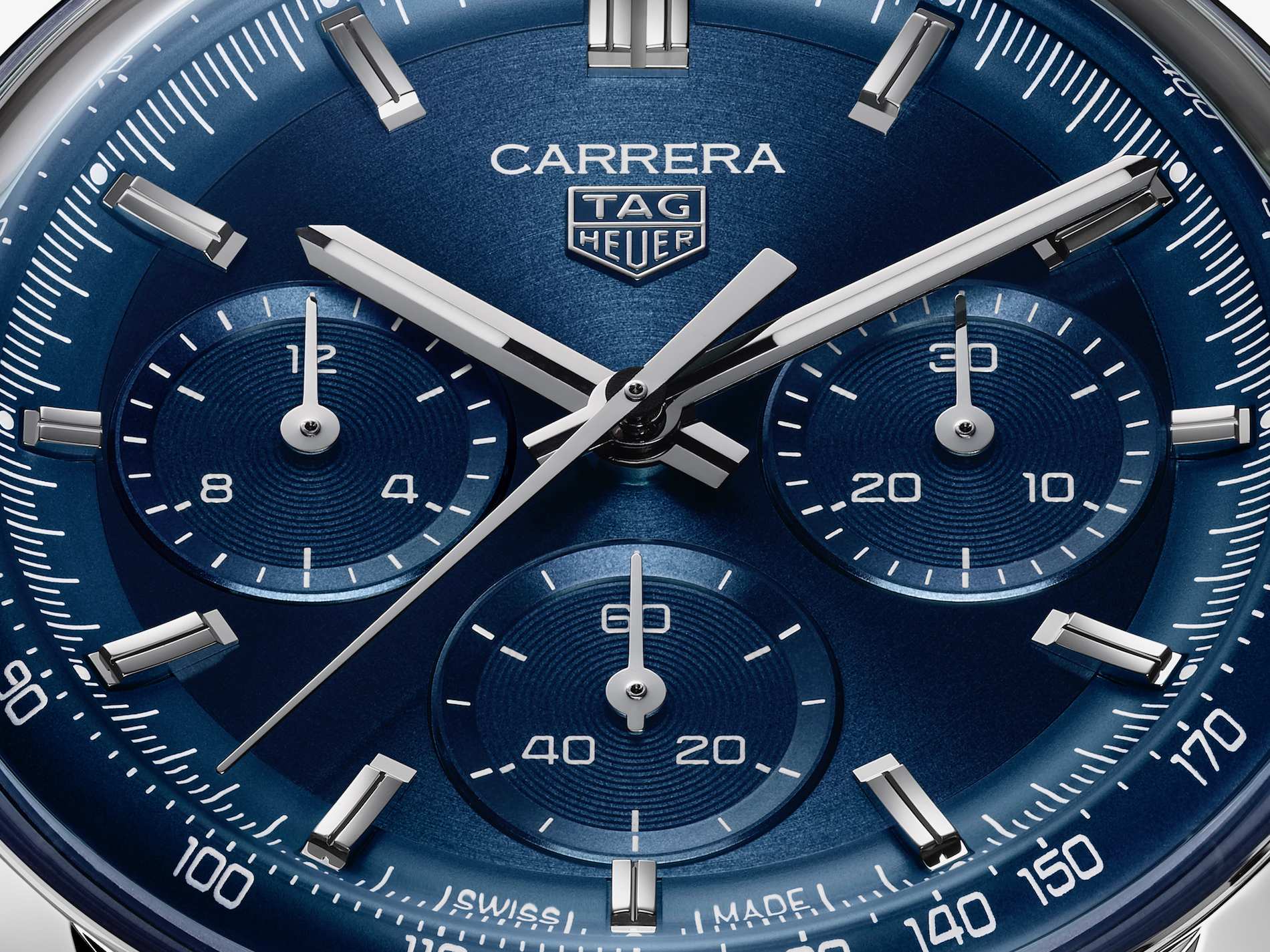The sculptural sapphire crystal curves seamlessly over a three dimensional dial flange, a hallmark of the glassbox design revived for the collection's 60th anniversary. This architecture allows light to be captured from every angle, enhancing the clean and date free dial that emphasizes depth and clarity. Every detail of the case is purposeful, drawing the eye toward the chronograph functions with an intuitive elegance that defines the modern TAG Heuer Carrera.