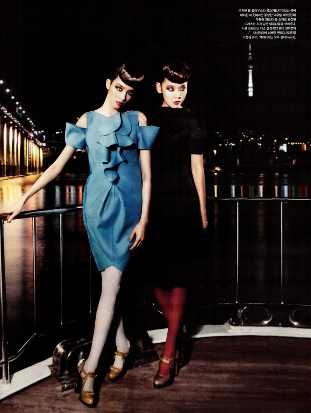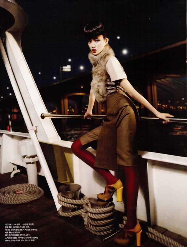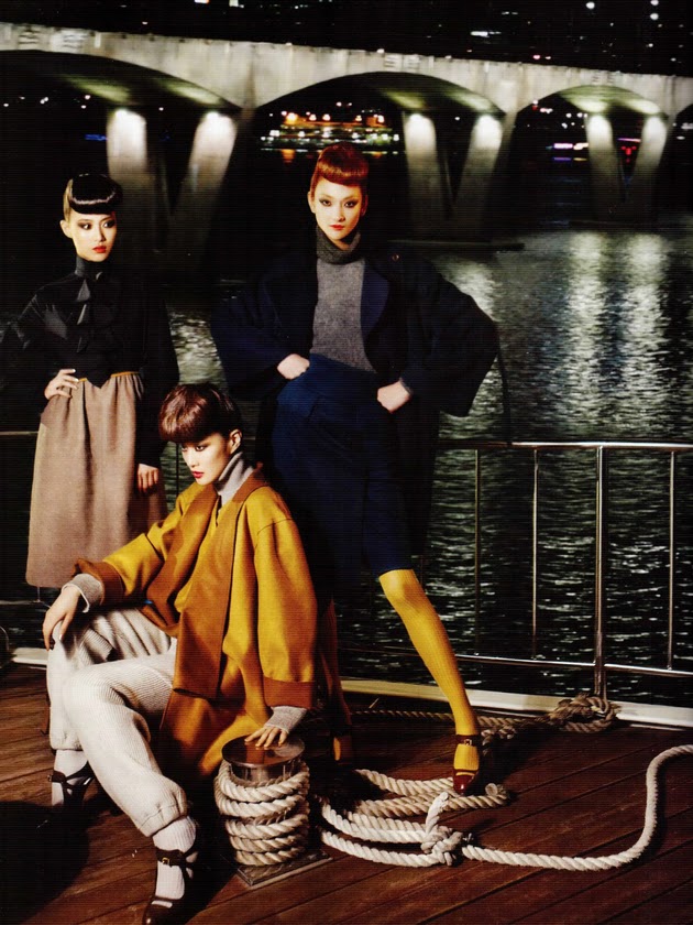 Models Ai Tominaga, Han Jin, Hyun Yi Lee, Lee Hye Jung, Sun Fei Fei and Shu Pei in an All-Asian cast from China, Japan and Korea feature in a fashion spread in the August edition of Vogue Korea.