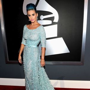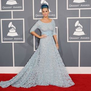 Katy Perry looks stunning in Elie Saab at the 2012 Grammy Awards held at Staples Center on Sunday in Los Angeles.