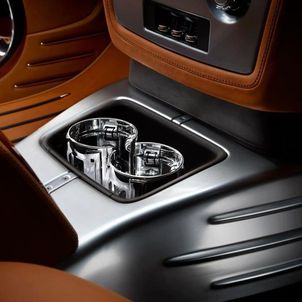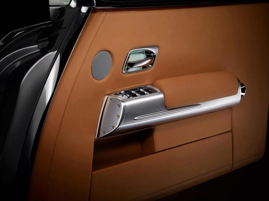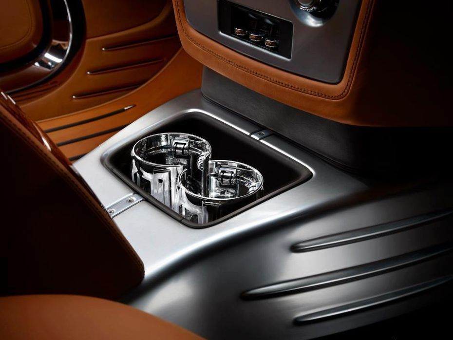 The Phantom Coupe Aviator Collection is finished in Aviator gray with a matte hood, and matte window and grille surrounds. Inside, wood and metal surround the driver while a Thommen aviation-grade clock sits in the upper fascia, sporting orange needle tips. The clock is complimented by Rolls-Royce’s dials for power reserve, speedometer and fuel gauges—though in this car they are finished in matte black.