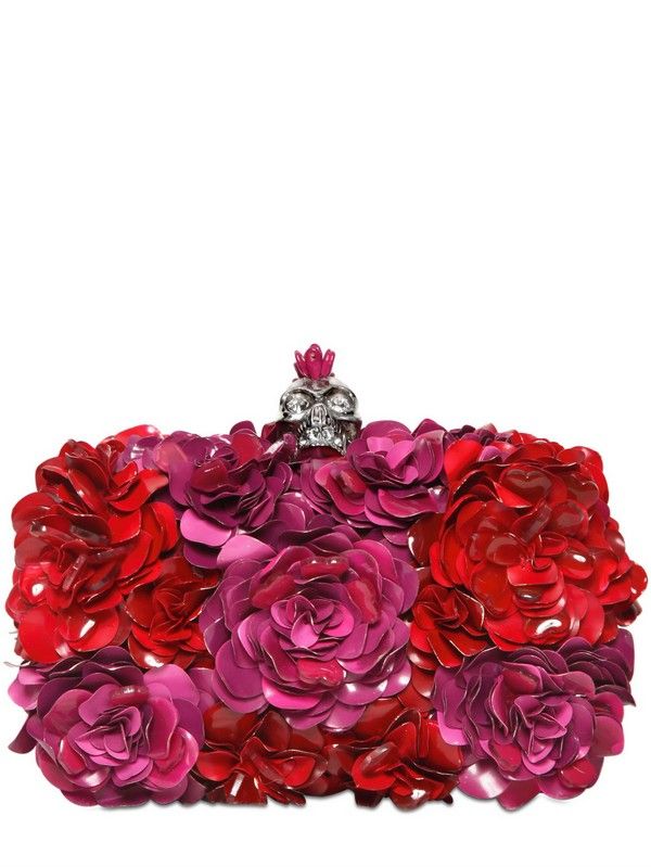 Alexander McQueen Clutch red-pink matal rose skull | SENATUS