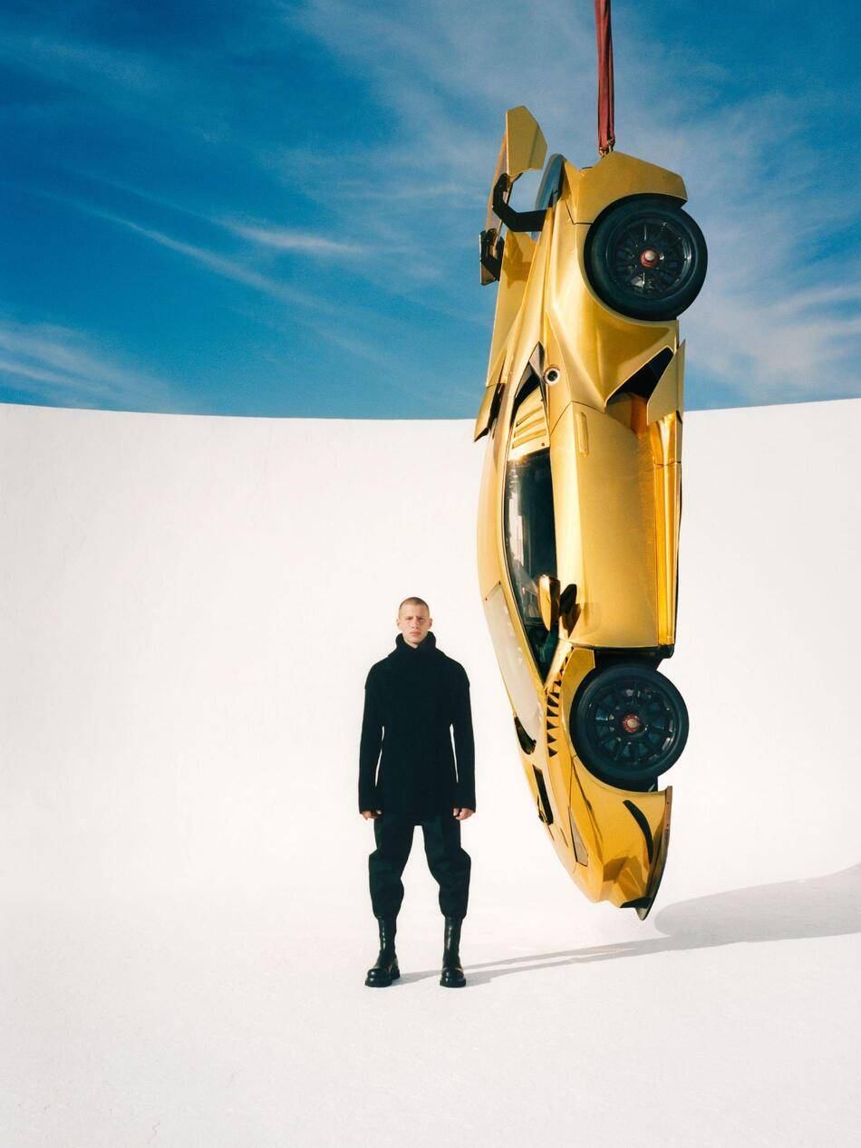 A fast car in pure gold is up-ended, as power is subverted, and these images offer a new vantage on the traditional status of luxury itself.