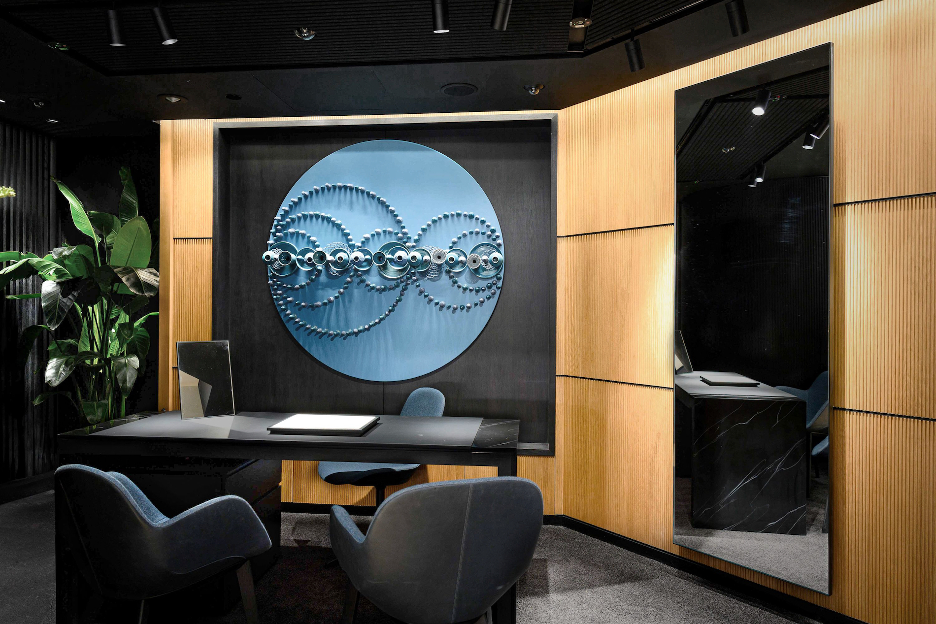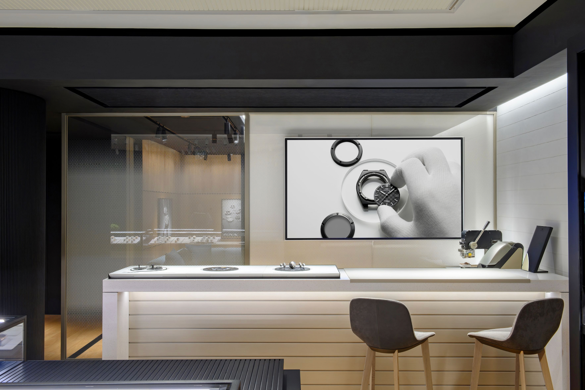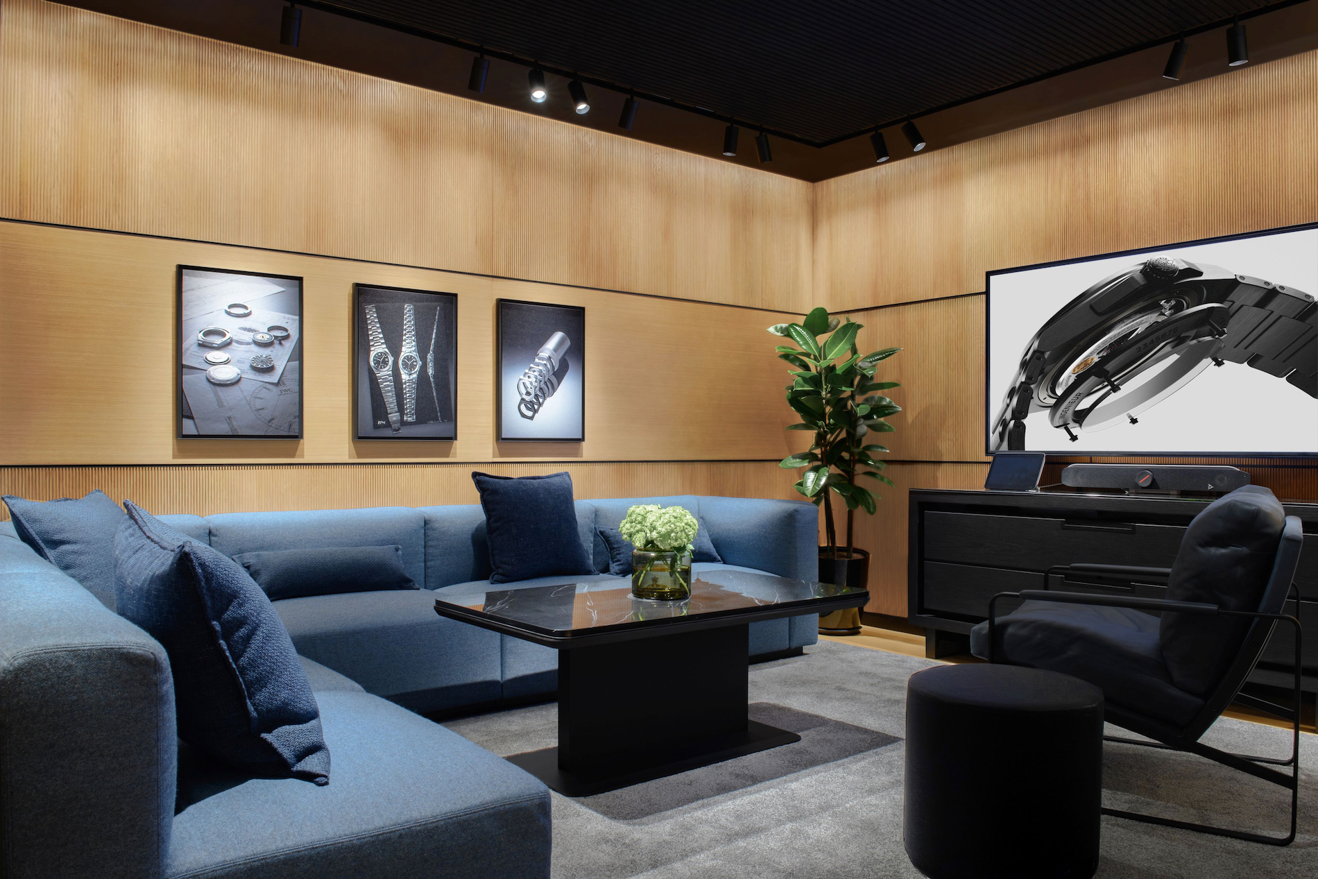 The Swiss watchmaker has designed a 100-square-metre environment that blends technical sophistication with inviting warmth to create a refined space where clients can experience the brand's engineering excellence. The interior reflects a commitment to timeless design through a careful selection of dark wood, textured metal, and soft textiles which results in an atmosphere of understated elegance.