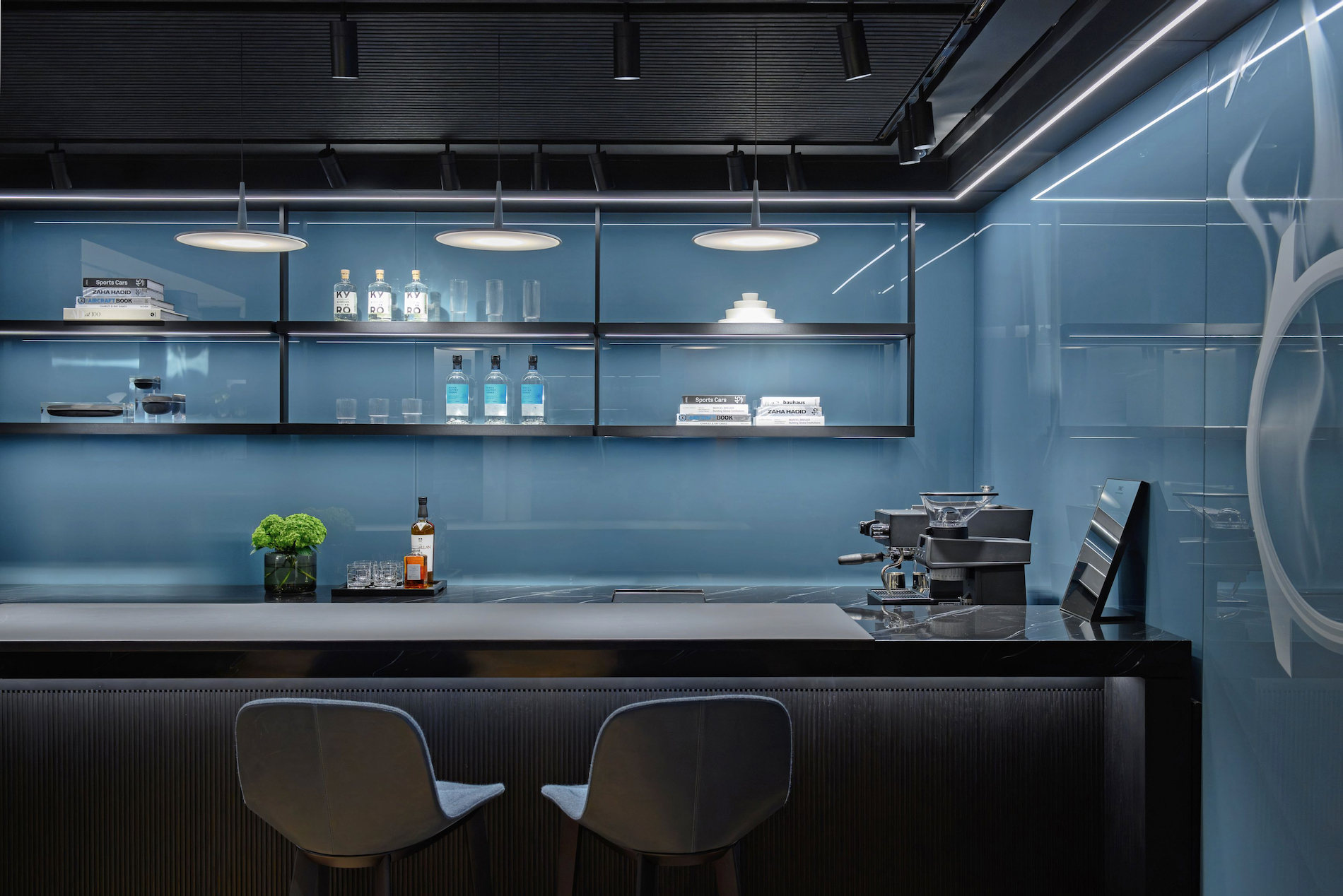 This modern layout redefines the retail experience by featuring a comfortable lounge inspired by the "Miramar" Pantone color. This distinct light blue shade was developed in collaboration with Pantone and first appeared on the Pilot’s Watch Chronograph 41 references earlier in the year. To enhance the visit, the new concept boutique includes a dedicated bar area where guests can relax with refreshments while immersing themselves in the IWC universe.