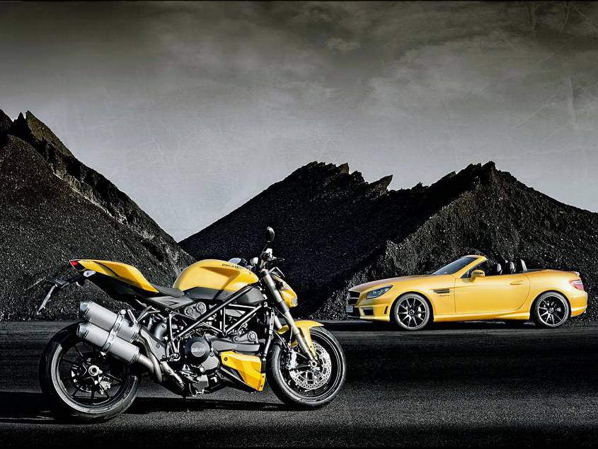 The Mercedes-Benz SLK 55 AMG and the Ducati Streetfighter 848 complement each other not only visually but also technically. Both models are the perfect embodiment of distinctive driving dynamics, expressive design and intense driving pleasure.