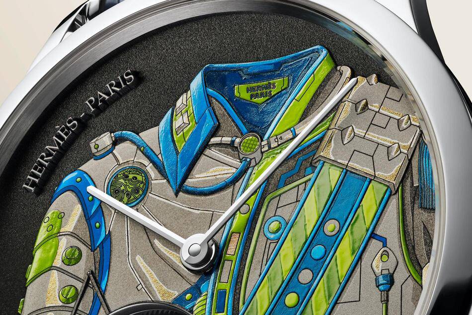 The futuristic armor of the Slim d'Hermès Neo Brandebourgs